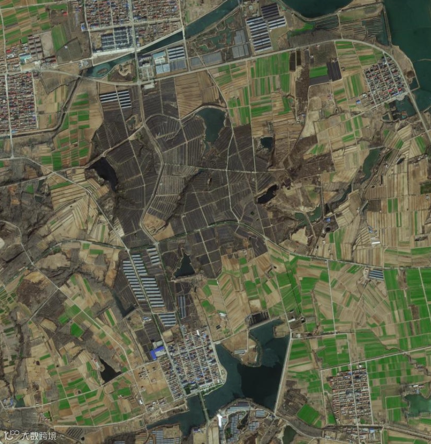 【沃田集团位于赣榆区黑林镇谢湖村和坝西村之间的中国最大的单体蓝莓种植一体化基地。南面那个小水库应该是为蓝莓田提供水源保障的。】