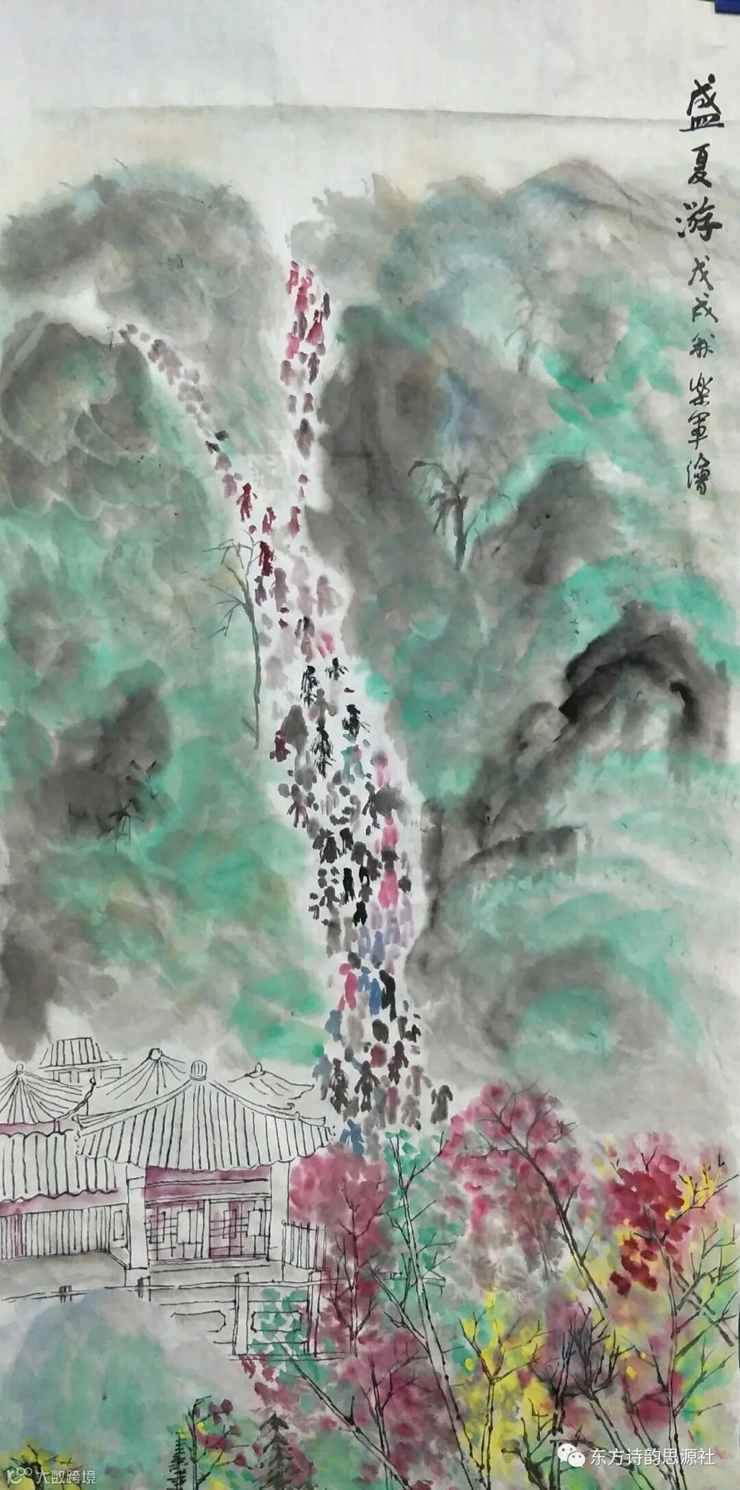 欢蝉倚树瀑悬空,伏日山乡草木葱。