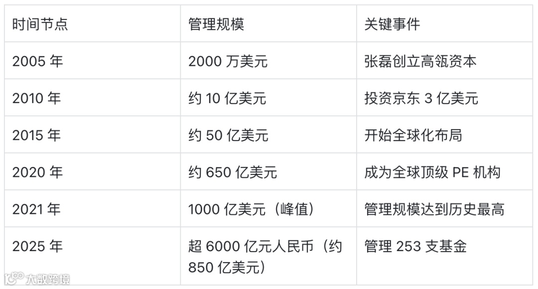 高瓴资本的管理规模增长呈现出指数级增长态势,反映了中国经济高速发展和资本市场不断成熟的历程: