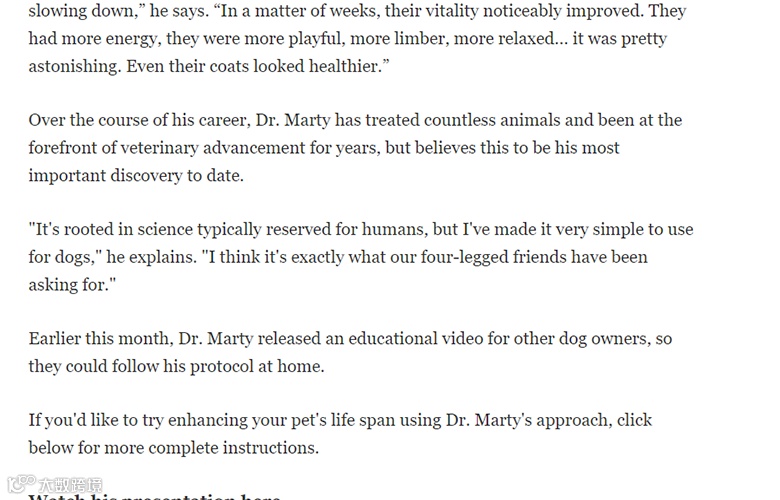 If you'd like to try enhancing your pet's life span using Dr. Marty's approach, click below for more complete instructions.”
