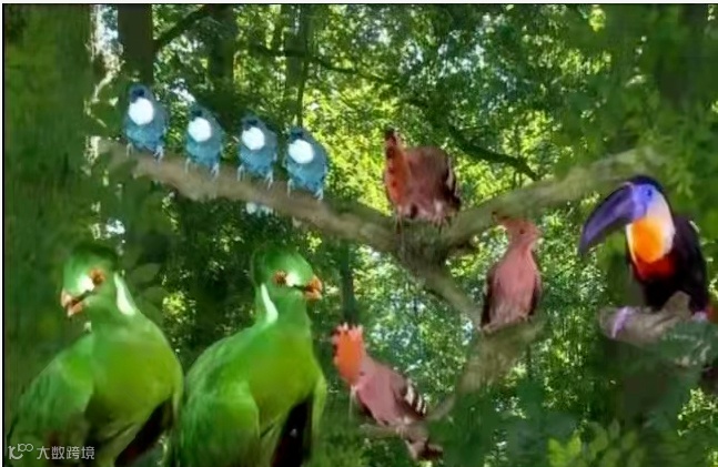 比如,嘴巴最大最长的巨嘴鸟,本身它的叫声就是比较粗,比较低沉的,片中给它设计的音乐就是低音声部的音乐,用长号、圆号演奏出来。而嘴巴短小身材纤细的非洲鹦鹉,叫声清亮高亢,为它设计的音乐就是高音声部的音乐,用长笛演奏出来。