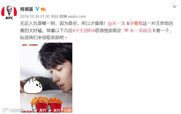 肯德基代言人朱一龙的粉丝昵称为“小笼包”,与新品名称高度契合。虽或属巧合,但品牌多次在社交媒体互动中呼应这一称呼,无形中加强了明星、粉丝与品牌之间的关联[k]。