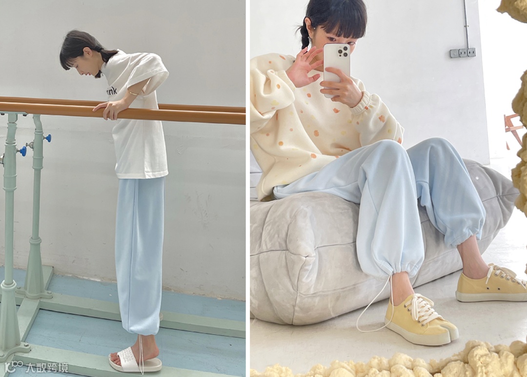 我一眼就被这条运动裤颜色的颜色打败了,清新软糯,和任何清浅色的上衣搭配起来都很好看。