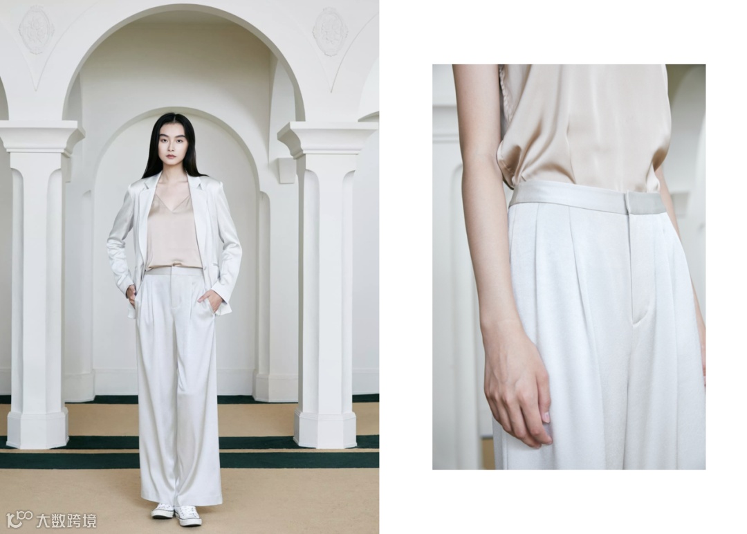 裤子面料很用心,用的是 85% 的进口醋酸面料,悬垂感特别好,走路都带风。