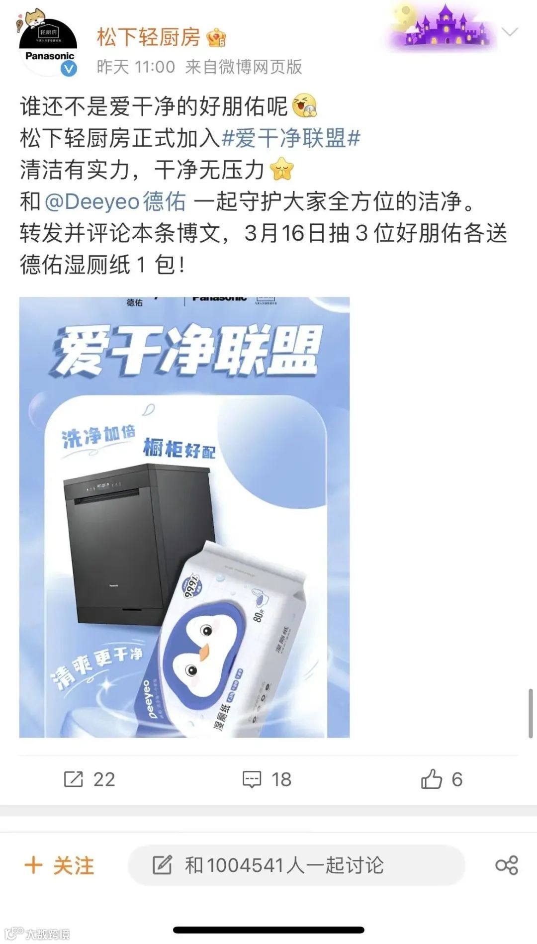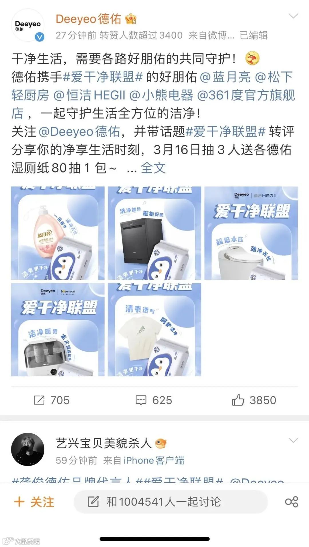 德佑联合“天猫大牌日”与“天猫超市大牌狂欢”,打造以销售为导向的品牌核心时刻[k]。通过微博发布“龚俊的洁净新选择”搜口令,引导用户在淘宝搜索互动,既提升粉丝参与感,也高效导流至电商平台[k]。