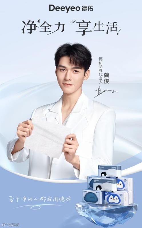 在注意力碎片化的传播环境下,品牌需通过高关注度事件实现破圈。德佑先借苏醒在综艺节目中使用湿厕纸擦脸的话题热度,签约其为品牌大使,实现社交平台的自发传播与用户认知启蒙[k]。随后,携手人气演员龚俊作为代言人,以其阳光、干净的形象强化“爱干净的人都在用德佑”的品牌联想,进一步聚合声量,打通从明星影响力到品牌认知的转化路径[k]。