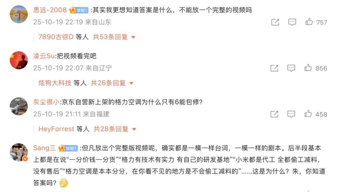 所谓的“黑格力”内容,前半段确实在比价格,后半段立马反转:格力技术更强、售后更稳、民族品牌。更魔幻的是,有些视频出自格力经销商。