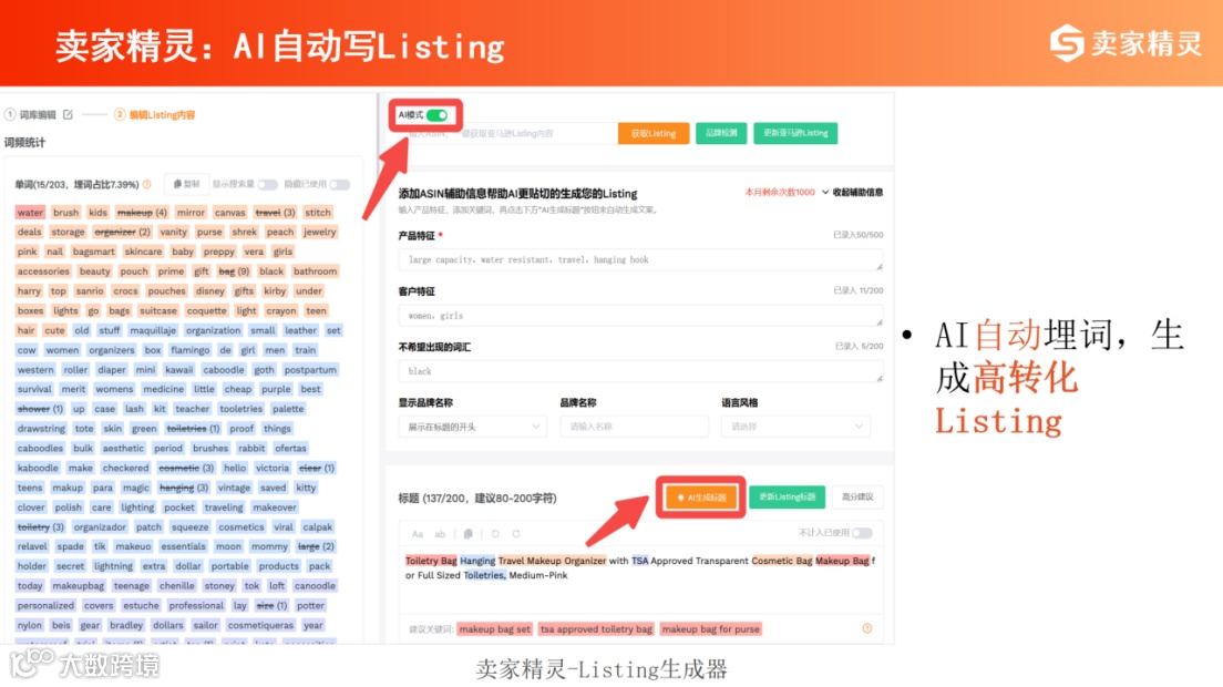 过去,产业带出海靠经验、靠展会、靠关系;而现在,AI正在重塑整个链条。卖家精灵也正通过大数据和AI技术,让卖家在选品、运营、投放、合规的每个环节,都更高效、更科学、更确定。现场,卖家精灵Wendy陆续给出了相应的路径。