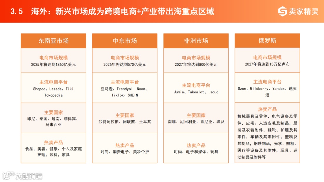 除了美国和欧洲,东南亚、中东、非洲这些地方,电商市场增长得特别快。