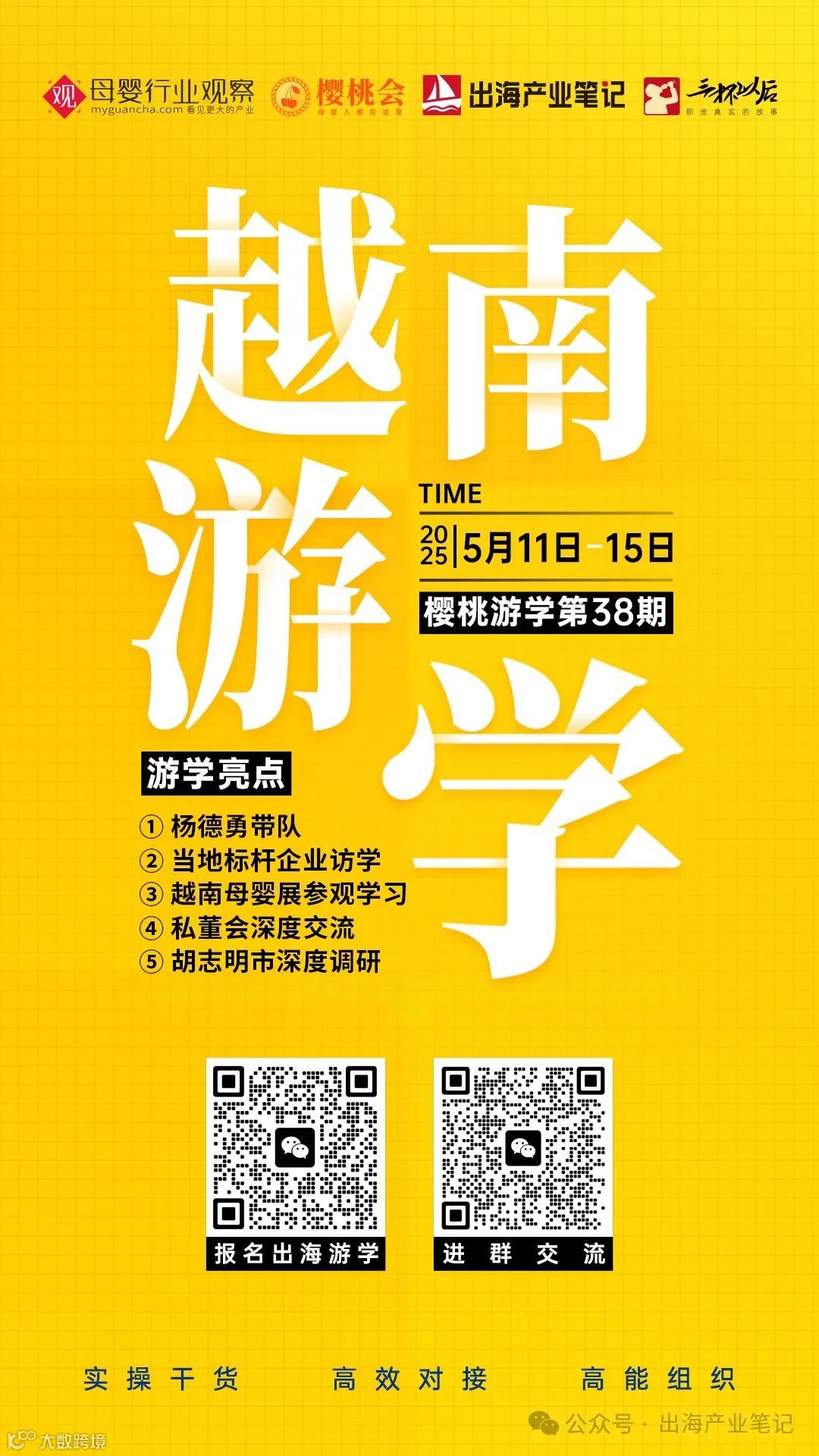 2025海外游学越南站正式启动,聚焦母婴行业出海新蓝海。本次活动将深入越南本地企业交流,实地考察婴童展会,参与私享会深度探讨市场趋势与运营策略,助力跨境从业者挖掘东南亚市场增长潜力
