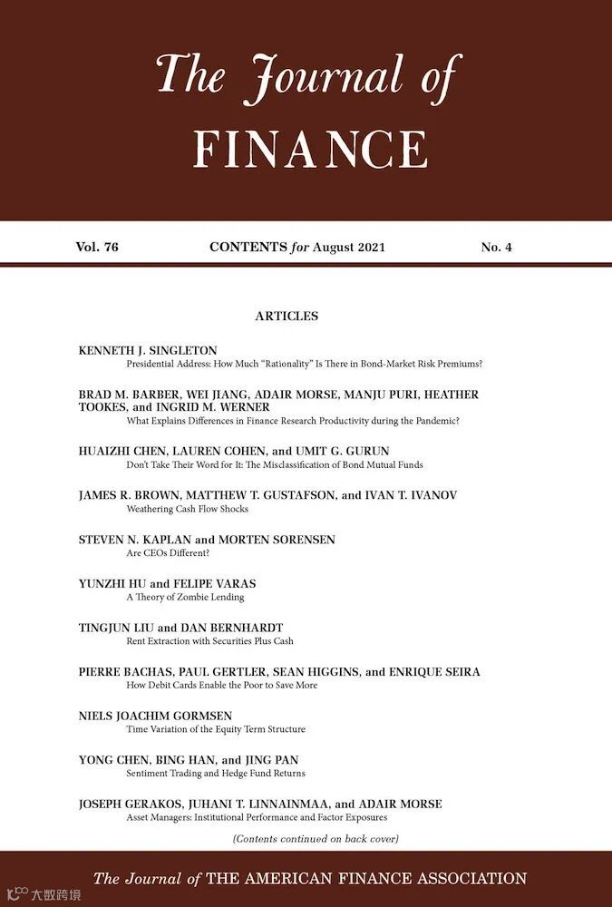 1. Journal of Finance 金融学杂志