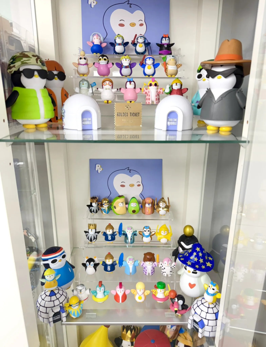 2024 年 2 月,胖企鹅与沃尔玛的合作进一步扩大,新增 1100 家门店,覆盖全美 3100 家沃尔玛,同步推出沃尔玛独家产品 ——5 款收藏手办与 25 款「小企鹅神秘冰屋」(Lil Pudgy Mystery Igloos)。