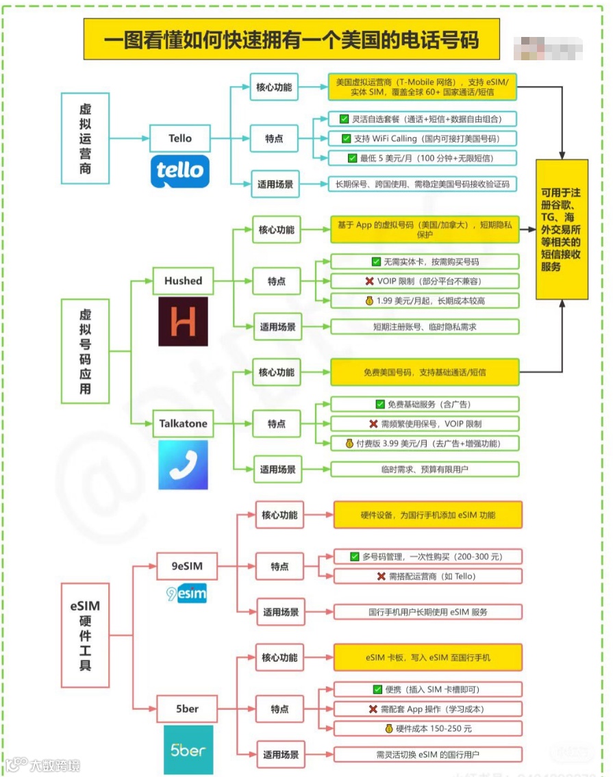 最近刷到一张对比图,整理了几种快速拥有美国号码的方式,看完我觉得对出海人真的有用,今天就用虎鲸出海的视角来跟大家聊聊,顺便开点脑洞。
