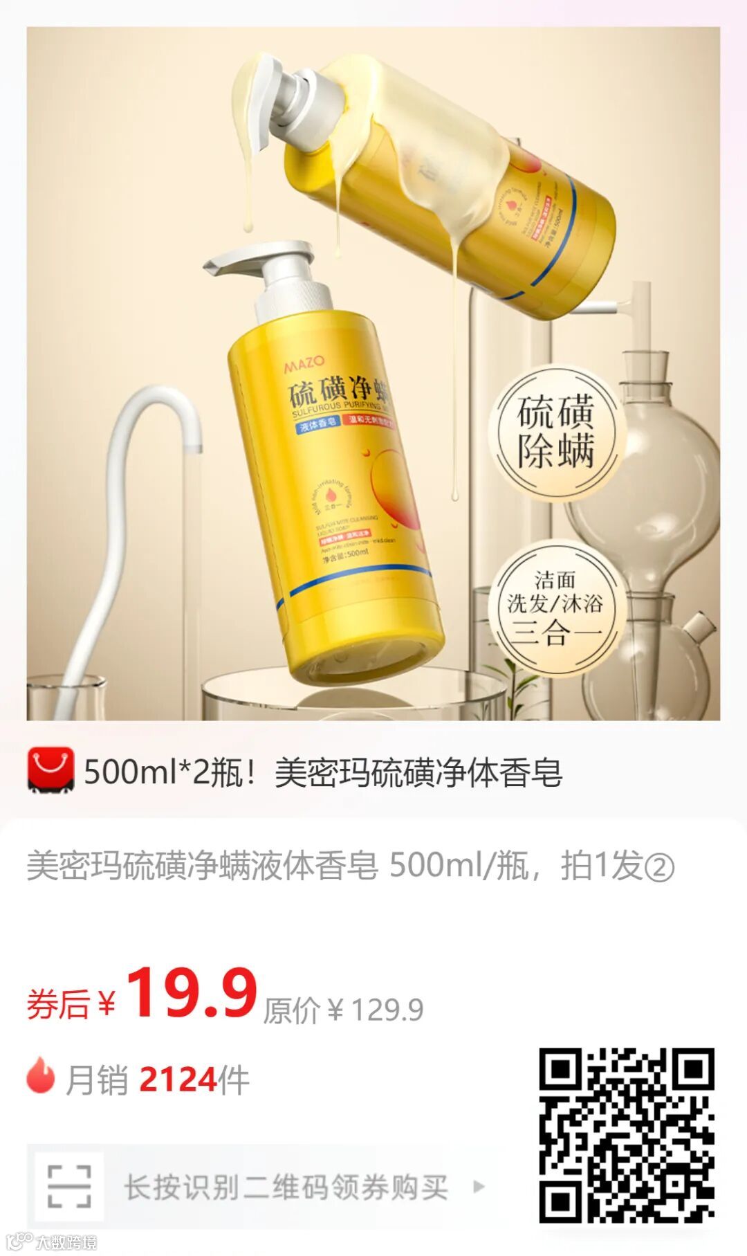 500ml Pure Body Sulfur soap *2, moisturizing and locking in water, gentle cleansing