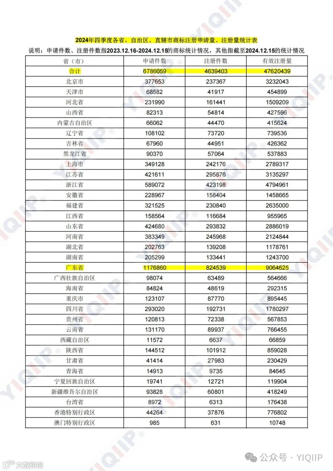 (中国商标网公布数据报告, 2024年中国商标申请注册数据)