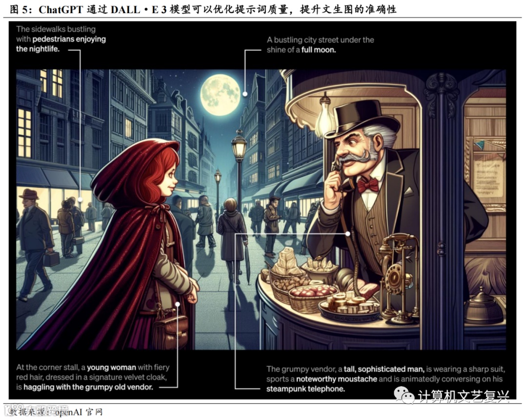 openAI还推出了DALL·E 3模型,可以将用户输入的文字转化为更高质量的提示词,从而生产更符合用户本意的高质量的图像,提升文生图的准确性。微软与openAI之间形成了比较明显的良性循环,openAI帮助微软不断提升其多模态AI能力,而微软则为openAI最新功能提供了强大的流量入口和使用迭代环境,二者有望相互赋能,持续进步,加速AI办公的商业化落地。