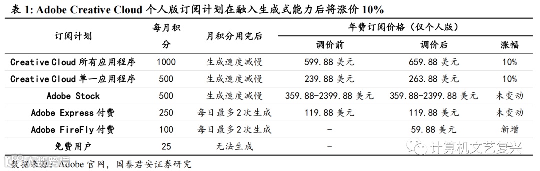 1.1. Adobe FireFly定价公布,会员价格同步上调