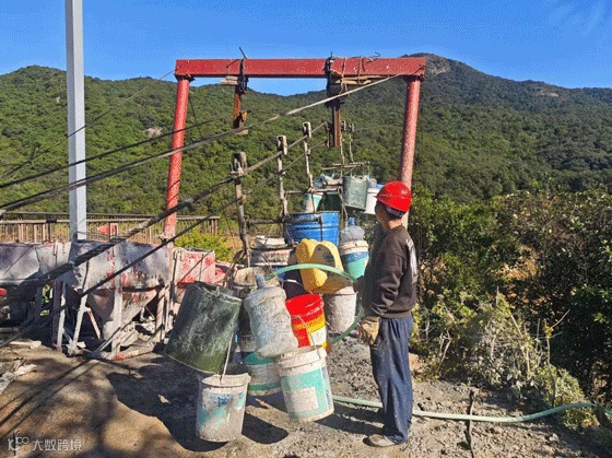 原材料的运输经历了多轮优化与调整。施工初期,团队先尝试以骡子驮运物资,但受山路陡峭与负重限制,运输效率有限。随后,又尝试利用农用无人机吊运精密模具与小型设备,然而因运力不足且易受天气影响,最终改为索道。索道日均可运输约30立方米建材,较传统人力运输效率提升15倍。