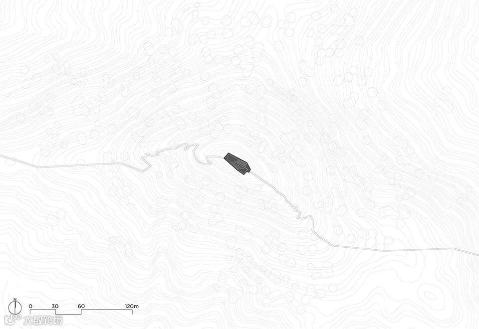 ▲下层嵌入山体的服务空间为登山者提供休憩与庇护© 白羽