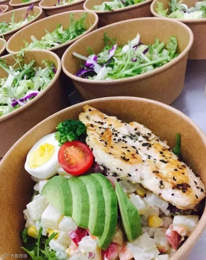 沙拉区支持自由搭配,提供鸡肉、牛肉、鲷鱼等优质蛋白,搭配粗粮、水果、蔬菜及多种酱汁[k]。