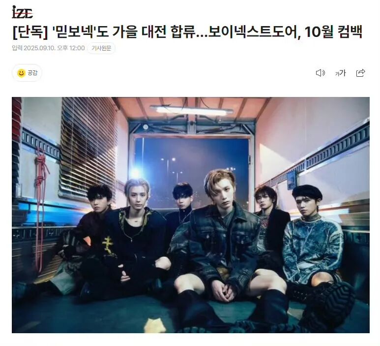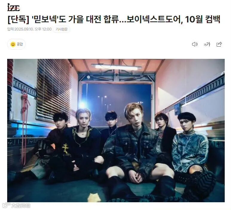 10日据独家报道,BOYNEXTDOOR确定将于10月发行新专辑,正在进行最后的准备。此次是组合继5月发行迷你4辑《No Genre》后,时隔5个月再次回归。