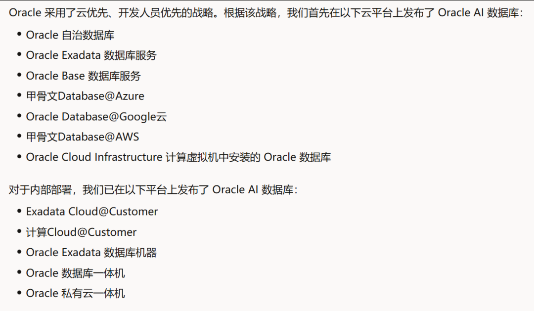 Oracle 率先完成了从支持AI到由AI驱动的历史性跨越,为数据库行业树立了新标杆。