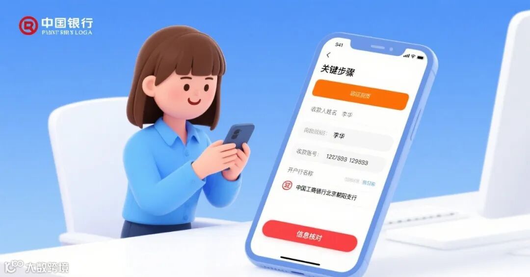 - 收款账号:输入内地银行卡号,输入后反复核对 3 遍(尤其是末尾几位数字,容易输错)。