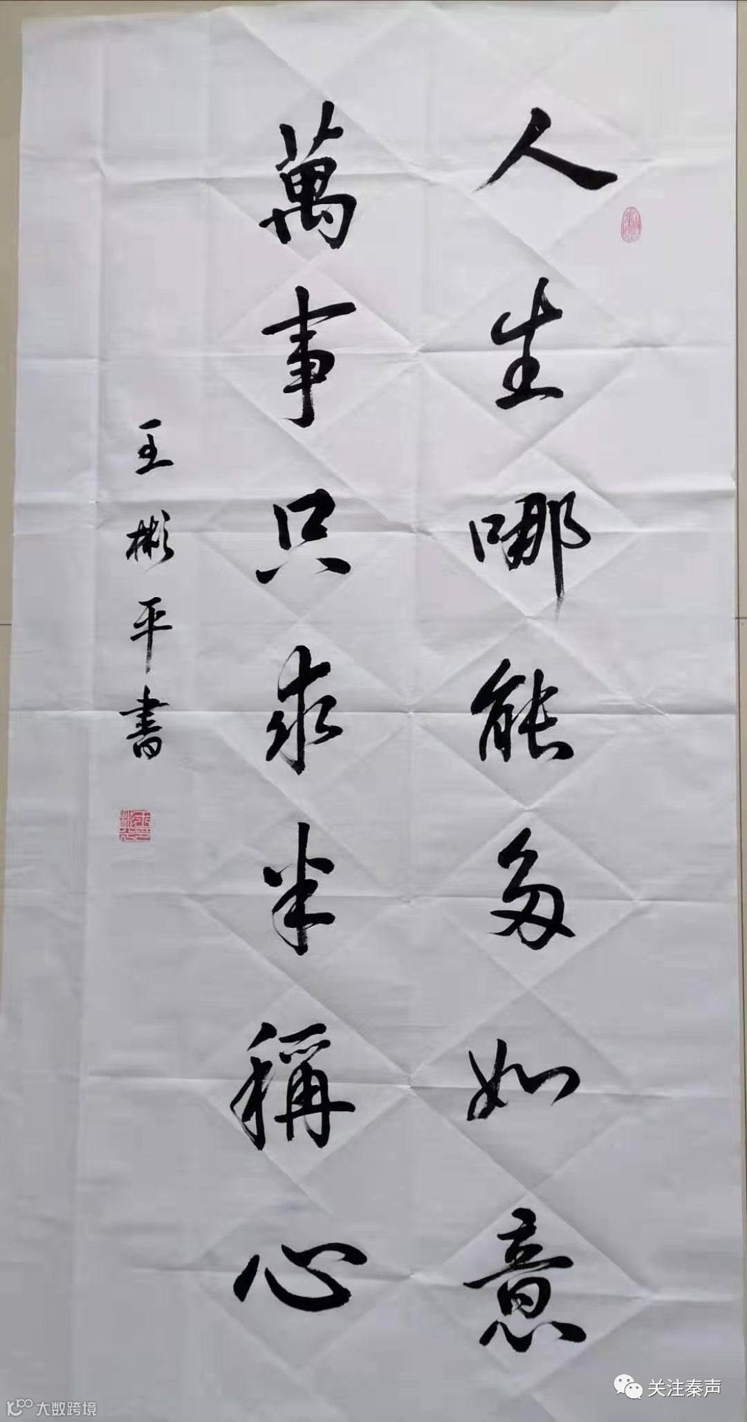 王彬平,男,汉族,1966年7月生,陕西省咸阳市彬州市新民镇人,陕西秦源书画院理事,西北书画院会员。自幼酷爱书法,书法学习一直是工作之余的重要内容,坚持以楷书为主,主学欧楷,柳楷,兼学行草,以王羲之、王献之法贴为范本。在二零一七年由陕西省发改委主办陕西秦源书画院协办的‘一带一路’书画大赛中,书法作品荣获三等奖。
