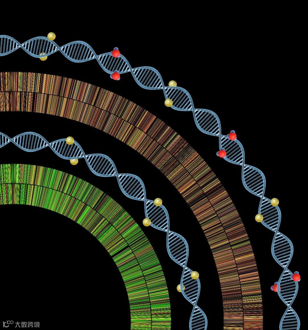 图2. 细菌基因组上磷硫酰化修饰位点分布示意图。在有甲基化(红色球)存在,基因组上主要磷硫酰化修饰(金色球)位点为GAAC/GTTC(外圈:桔色和黄色),敲除Dam甲基转移酶基因后,基因组上主要磷硫酰化修饰位点变为GATC(内圈:绿色)。