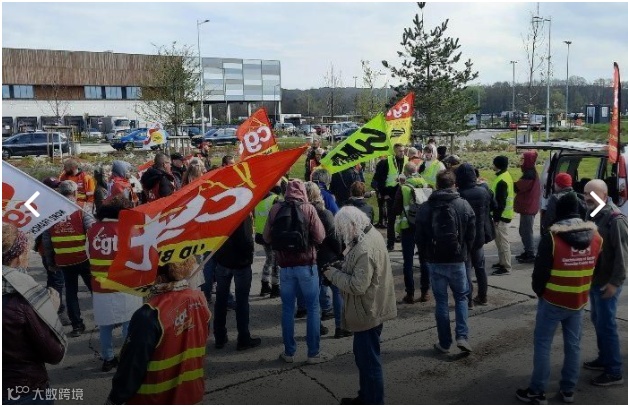 4月20日,约有100人聚集在亚马逊法国仓库中心Fontaine前,进行了罢工。