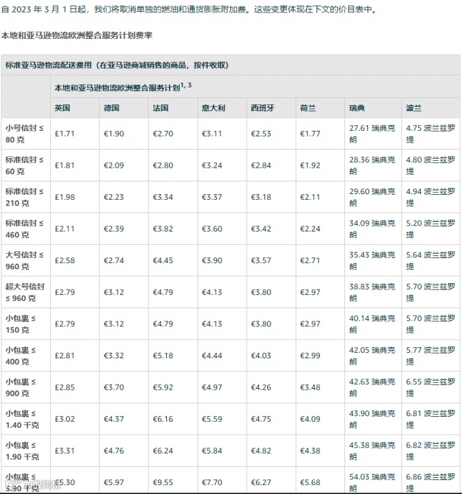 一起了解下,于2023年3月1日(世界标准时间)实施的2023年欧洲站亚马逊物流费用的变更。