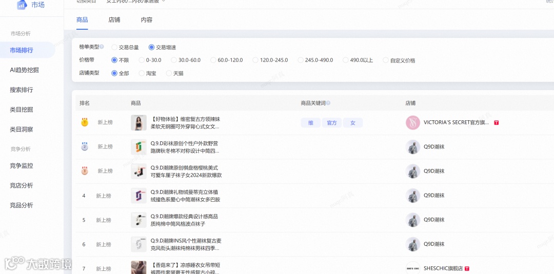 市场排行主要用于识别当前热销商品及高增长潜力款。通过分析高增速产品的目标人群、适用场景、价格带及流量结构,可快速定位市场机会[k]。