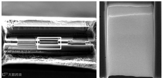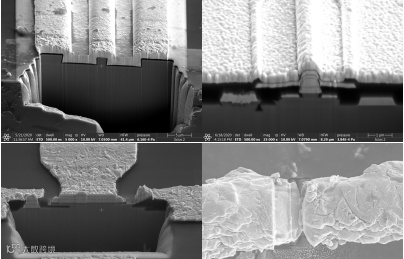利用FIB溅射刻蚀功能可定点切割试样并观测横截面(cross-section)来表征截面形貌尺寸,还可配备与元素分析(EDS)等相结合的体系来分析截面成分。普遍应用于芯片, LED等失效分析方面,普通IC芯片在加工时存在问题,采用FIB可迅速定点地分析缺陷产生的原因并改进工艺流程,FIB系统已成为当代集成电路工艺线必不可少的设备。