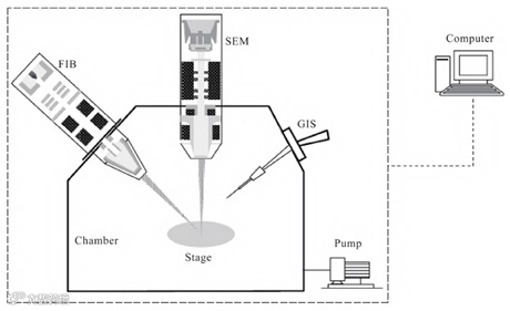 聚焦离子束扫描电子显微镜(Focused Ion Beam-Scanning Electron Microscope,简称FIB-SEM)双束系统是指同时具有聚焦离子束(FIB)和扫描电子显微镜(SEM)功能的系统。通过结合相应的气体沉积装置,纳米操纵仪,各种探测器及可控的样品台等附件,成为一个集微区成像、加工、分析、操纵于一体的分析仪器,广泛应用于物理、化学、生物、新材料、农业、环境和能源等众多领域。