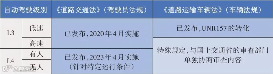图2 日本自动驾驶有关法规
