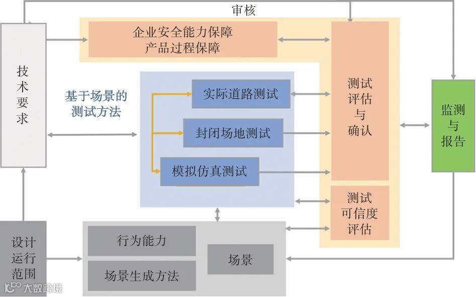 当前,在自动驾驶汽车安全评估方法的探索和实践中,国内外就“多支柱”测试方法和评估方法的框架思路基本一致。