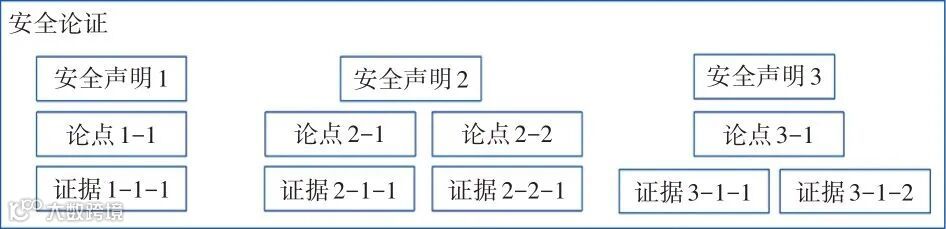 安全论证方法(Safety Case Method)提供了一个结构化的顶层框架,包括企业提供的多个安全声明,每个安全声明对应一个或多个论点,以及支持论点的证据,如图5所示。