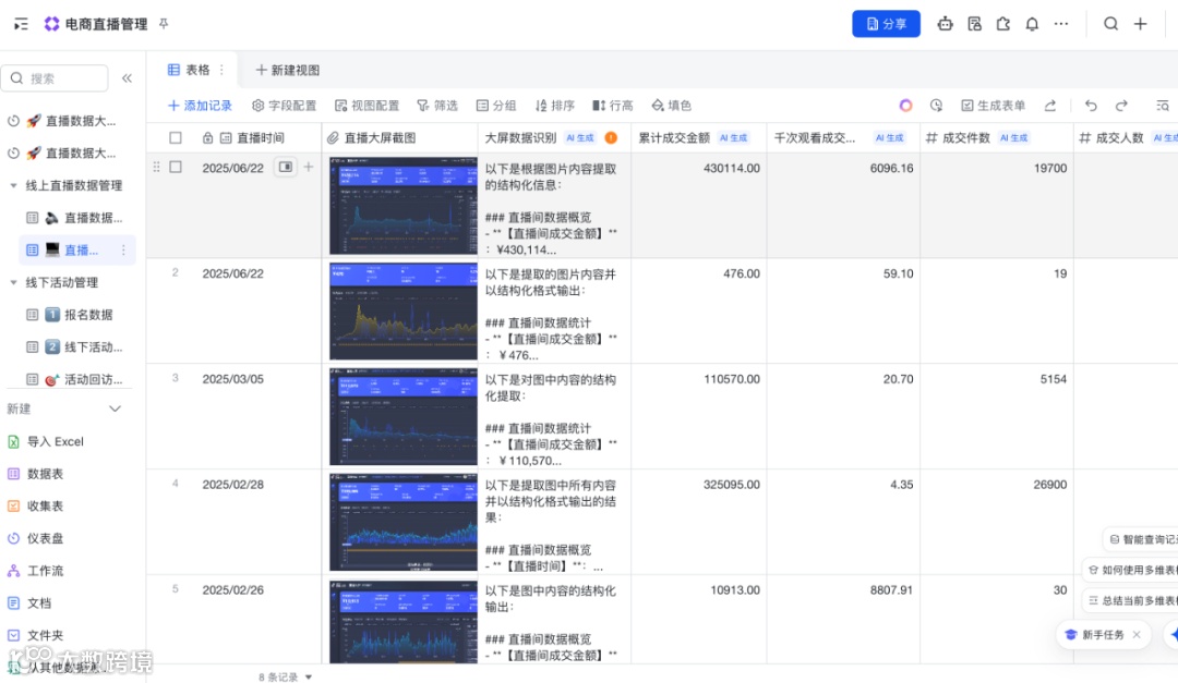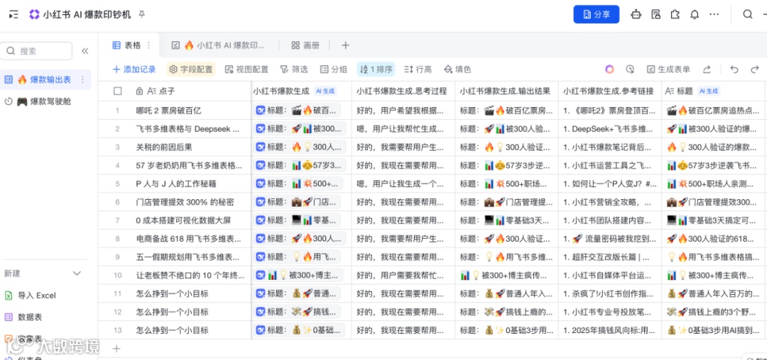 最近发现飞书多维表格真的太好用了,不仅可以自动化处理数据,还能一键生成文本、完全不用费劲记复杂操作,真的够省时省力!