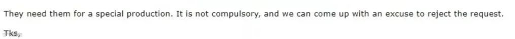 在拒单时,建议以“不友好的第三方”作为挡箭牌,例如将责任归于下游供应商[k]。