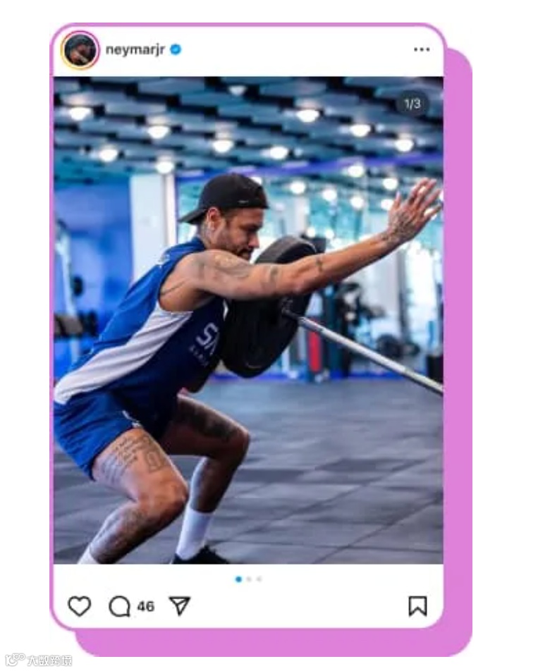 内马尔是 Instagram 上最受关注的足球运动员之一。他的职业生涯曾效力于多家顶级俱乐部,并代表巴西参加国际赛事,因此积累了庞大的全球粉丝。