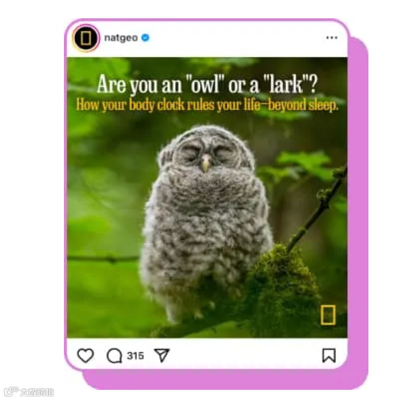 提到国家地理,你可能会想到那些来自世界各地的标志性、震撼人心的摄影作品。这也让它的品牌非常适合 Instagram 这种以视觉为核心的平台。除了发布唯美的照片,国家地理还会分享长篇报道中的精华内容,配以引人注目的文字,引导观众深入阅读。同时,他们也利用 Instagram 宣传新的媒体合作,例如与大卫·布莱恩和 Disney+ 合作的特别节目。这样的内容组合极具吸引力,能为用户提供持续关注的理由。