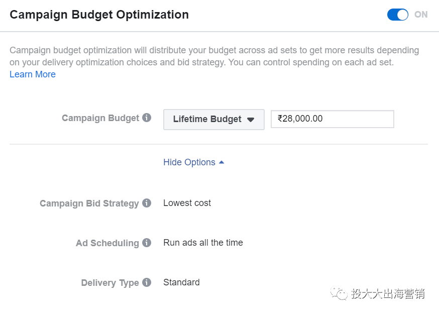 接下来,你还将看到“Campaign预算优化”选项。这一步选择预算类型,即每日预算或终身预算。