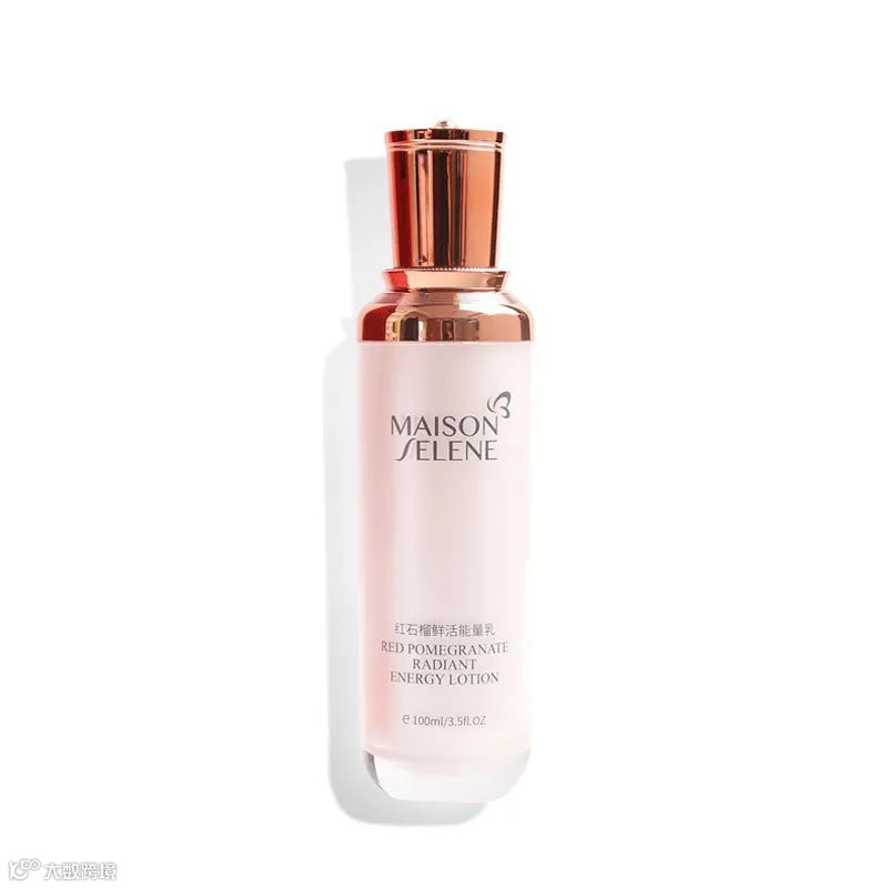 短视频封面作为内容的“第一眼印象”,需遵循“产品中心化”设计原则。以MAISON SELENE红石榴鲜活能量乳为例,其封面采用纯白色简洁背景,通过人工布光形成清晰光影效果,瓶身自然阴影投射增强立体感;产品置于画面正中心并占据大部分空间,完整呈现品牌名称、蝴蝶装饰图案、中英文产品名及容量标识等关键信息,实现细节的充分展示。