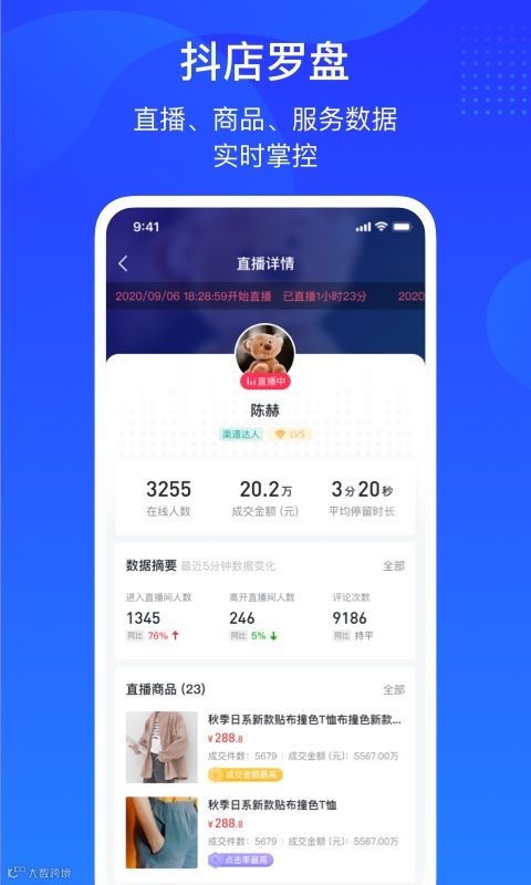 投流效果监控依赖抖店后台与第三方工具的协同。抖店罗盘提供直播数据实时看板,可展示最近5分钟进入直播间人数(如1345人,较此前增长76%↑)、离开人数(246人,增长5%↑)及评论互动数据,辅助商家实时调整投放策略. 蝉妈妈2025版数据大屏则支持ROI实时监控,通过可视化界面展示付费流量占比、转化漏斗等核心指标,助力商家快速定位CTR(点击率)、CVR(转化率)等关键指标的优化空间。