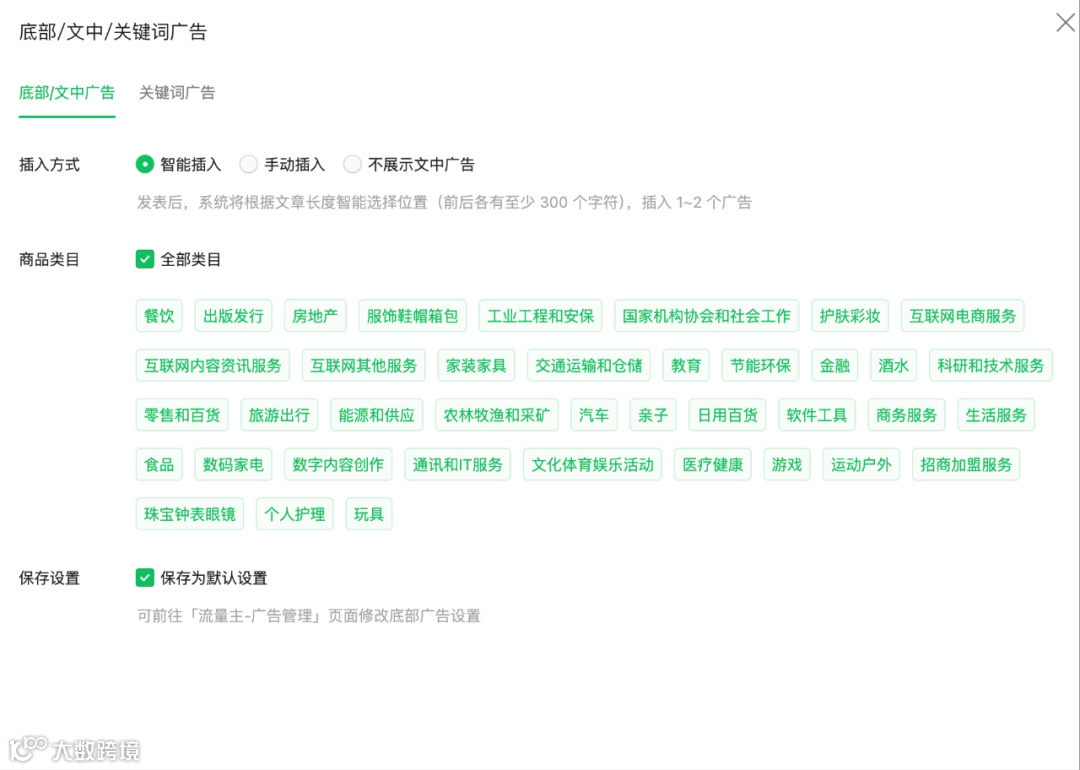 这里大家可以手动去插入;根据自己的读者属性去调整插入的广告类别;选择自己公众号粉丝群体可能感兴趣的广告类目去插入,比如房地产类目的公众号就尽量插入房地产类目的广告。
