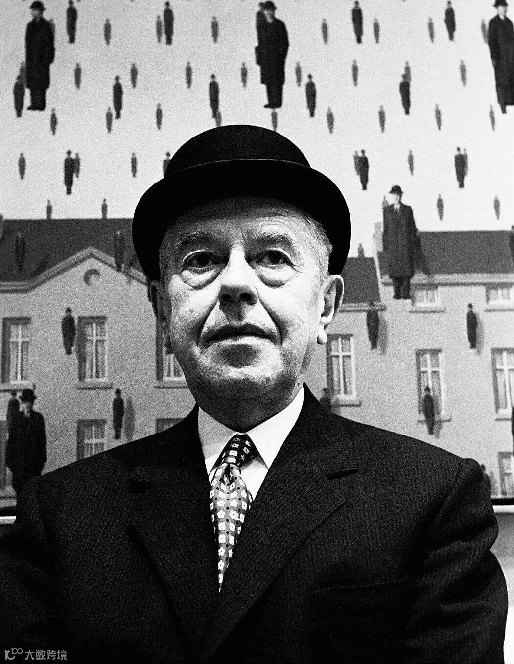 · 马格里特1898年生于比利时,少年经历母亲自尽的创伤。这段阴影塑造了他敏锐的感知力,也成为他创作的隐秘根源。早年靠广告与壁画为生,他逐渐发展出独特的视觉符号。1927年定居巴黎,加入超现实主义圈子,却并不热衷于梦境的混乱,而是坚持以冷静、理性的方式呈现“不合逻辑”的现实。礼帽、云朵、窗户与日常物,成为他哲学式的视觉词典。