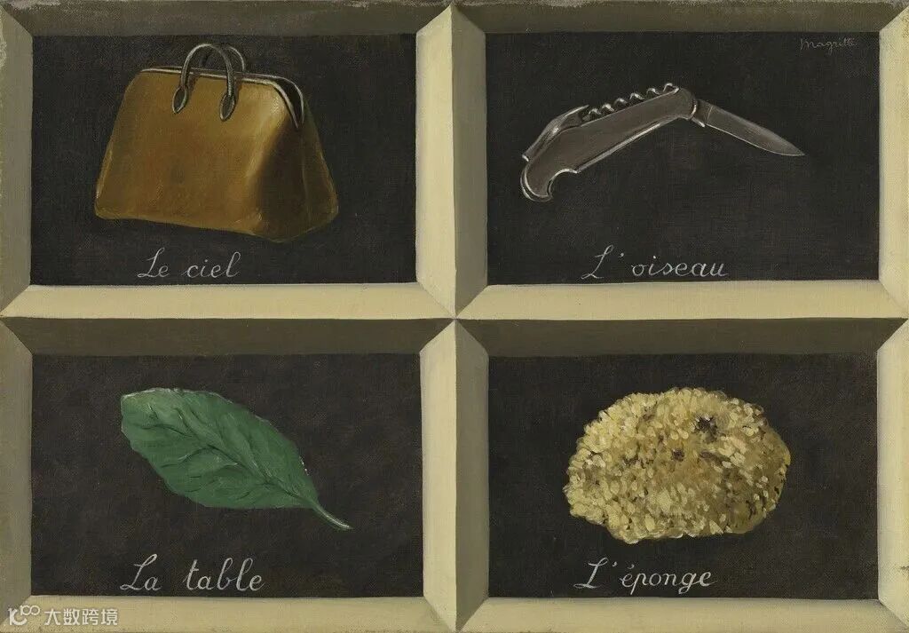 · 在代表作《这不是一支烟斗》中,一只烟斗被画得栩栩如生,但下方的文字却写着:“这不是一支烟斗。”这幅作品挑战了我们对图像和语言的依赖:图像≠事物,文字≠现实。玛格丽特通过这种方式揭示“图像与事物的距离”,把绘画变成哲学的舞台。相比达利的激情梦境,他更像一位冷静的逻辑学家,用视觉提出问题。