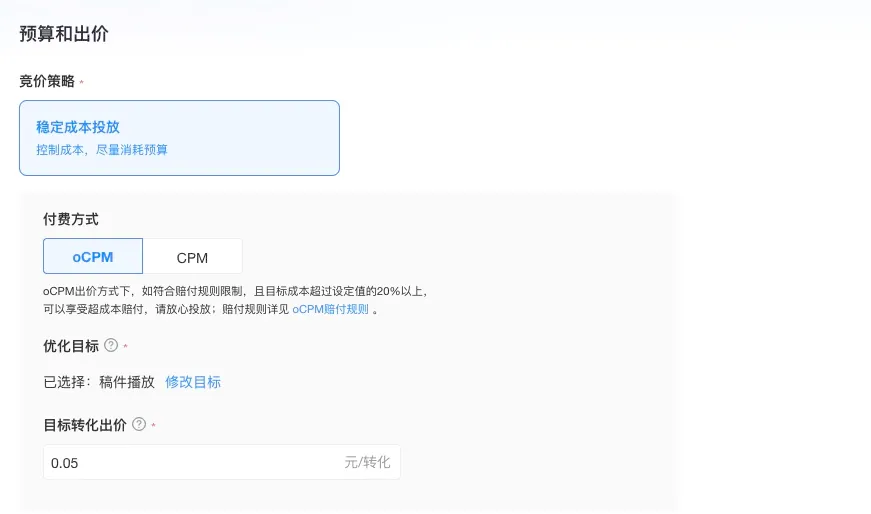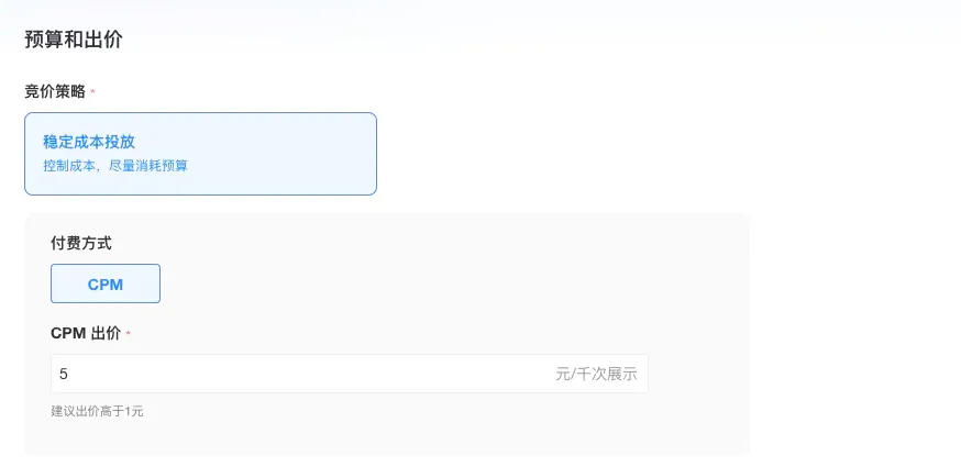 推广账号用户关注:oCPM自然用户关注5元起竞价;