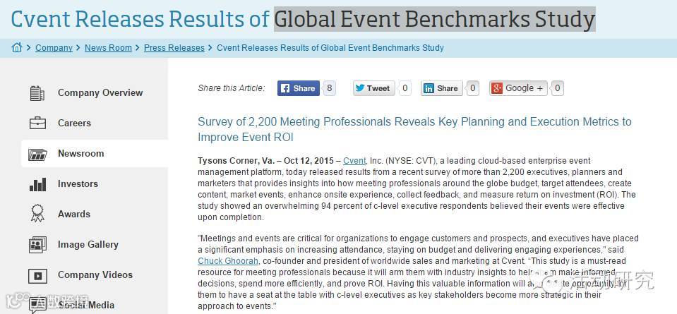 资料来源:http://www.cvent.com/en/company/cvent-releases-results-of-global-event-benchmarks-study.shtml