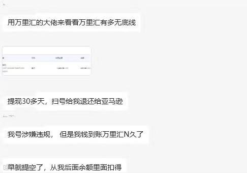 之前PingPong疑似应亚马逊要求冻结卖家资金,引起一众卖家恐慌,现在万里汇又出现退余额给亚马逊??